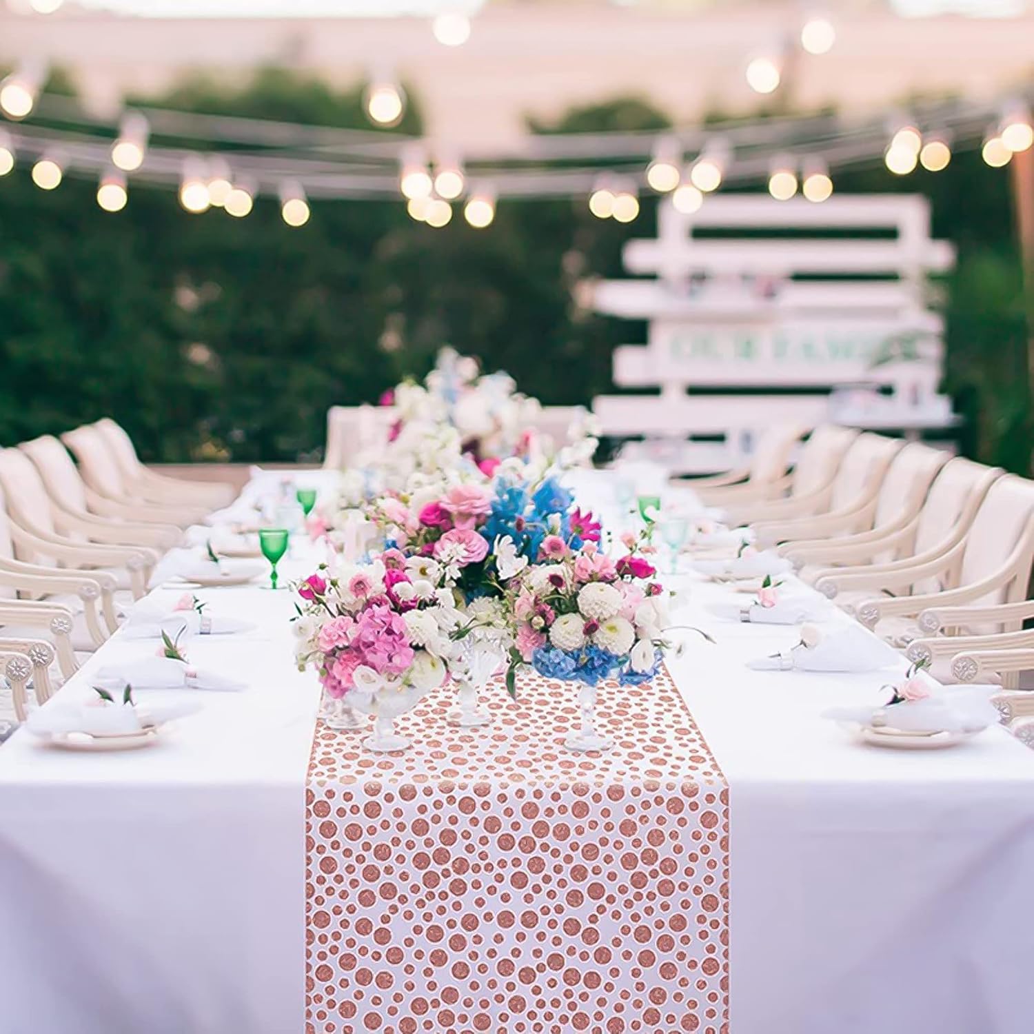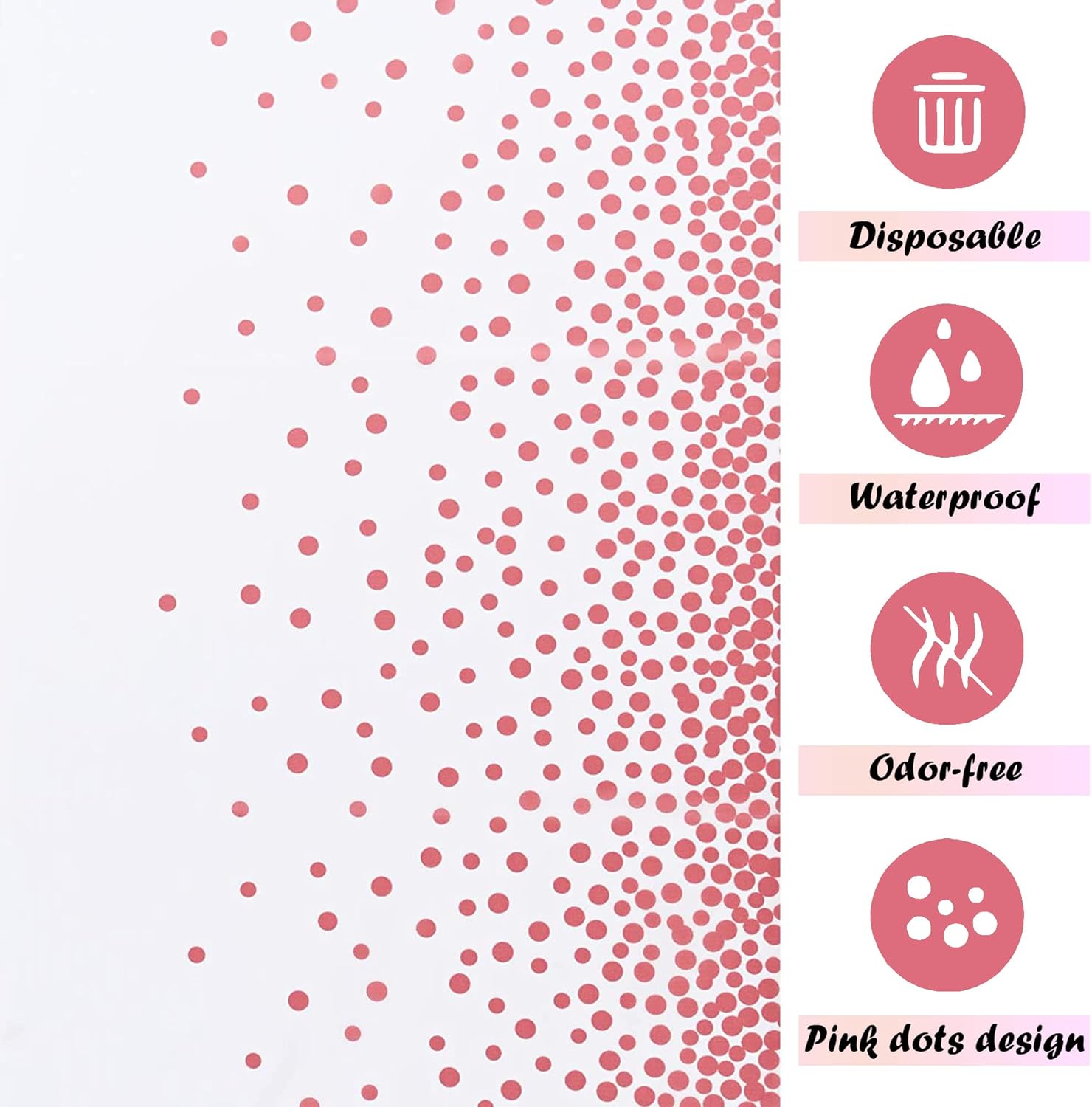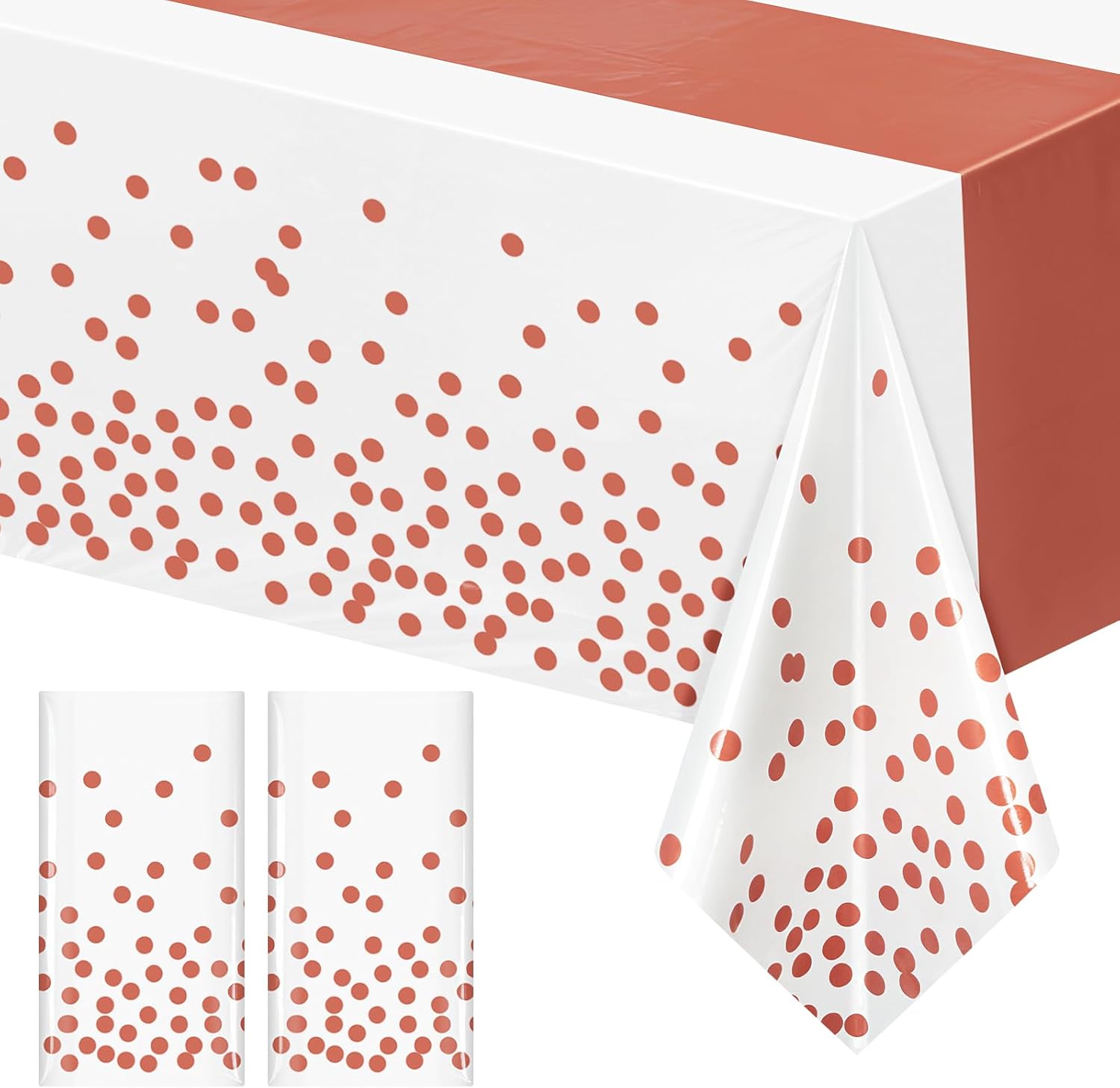 This disposable plastic tablecloth features a modern table runner–style center stripe with matching polka dots on both sides, creating a coordinated and elegant table setup without the hassle of fabric linens. Size & Fit Each rectangular tablecloth measures 54 x 108 inches, designed to fit standard 6–8 foot rectangular tables commonly used for dining, buffet, dessert, and gift tables. Material & Protection The tablecloth is made from durable plastic material that is waterproof and stain-resistant, helping protect tables from spills, food messes, and everyday party accidents. Disposable Convenience This tablecloth is designed for single-use convenience. After the event, simply roll it up and dispose of it—no washing or storage required. Occasions Ideal for birthdays, weddings, baby showers, bridal showers, anniversaries, holiday parties, graduations, picnics, and both indoor and outdoor celebrations. Decorative Value The runner-style center stripe creates a visually centered table design, helping elevate party décor while keeping tables clean and organized. Who Is It For Designed for hosts who want a stylish table setup with minimal cleanup, including families, party planners, event hosts, and casual entertainers. Indoor & Outdoor The lightweight plastic material is suitable for both indoor and outdoor use, including picnics, backyard parties, and patio events. This disposable tablecloth combines a clean, modern design with practical table protection, multiple pack options, and easy cleanup—making party hosting simpler and more enjoyable.