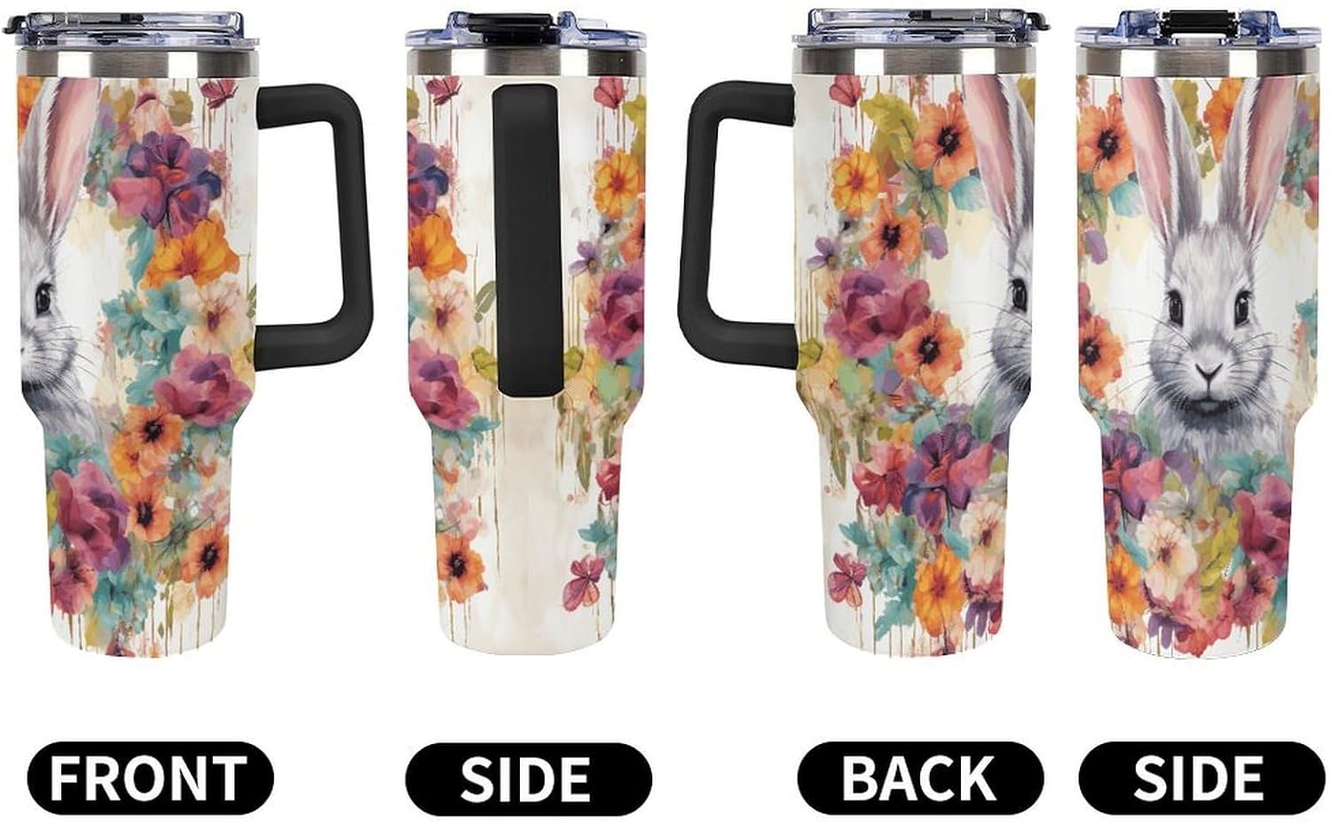 40 oz Tumbler: Keep Your Drinks Hot or Cold for Longer Perfect for long trips or days at the beach, this 40 oz thermal tumbler keeps your drinks at the perfect temperature for hours. The Tumbler is made from 304 stainless steel and fits standard cupholders, and with a variety of pattern options, you can get an Emotional Support Water Bottle. Its double-wall stainless steel design ensures optimal insulation, while the leak-proof lid prevents spills. Plus, its 180-degree rotating handle adds convenience and practicality to your daily adventures. Capacity: 40 oz (approx. 1.2 liters) Double-wall insulation Leak-proof lid 180-degree rotating handle Enjoy your favorite drinks anytime, anywhere with this versatile and practical thermal tumbler! Tumbler is double walled and vacuum insulated to keep your drink hot or cold for hours. The cup is outfitted with an ergonomic handle, that is aesthetically designed for comfort. It comes with a straw lid and two straws so you can enjoy your favorite beverage on the go.