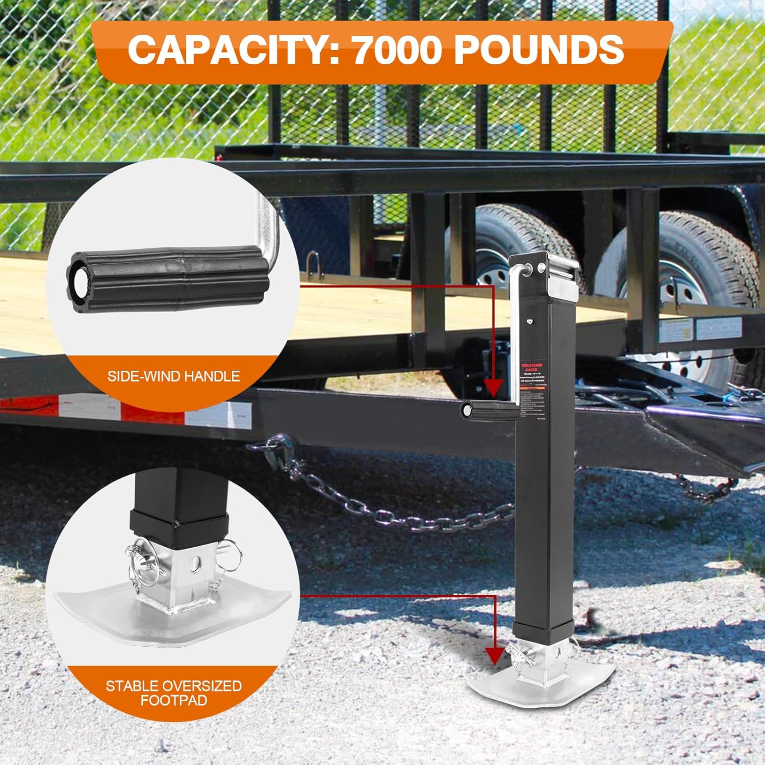 Heavy Duty Weld Square Trailer Jack – 7000 lbs CapacityDesigned for reliable performance, this weld square trailer jack supports up to 7000 pounds, making it ideal for heavy trailers and boats. The durable swivel design allows easy maneuvering and positioning.Simple 4-Step Hitching ProcessRoll the trailer into position and turn the crank counterclockwise to lower the trailer.Lower the trailer onto the hitch until it securely locks onto the hitch ball.Unlock the trailer jack.Raise the jack to an offside position for transport.Robust Build and Reliable FinishConstructed with a weld-on square tube design, this trailer jack offers outstanding strength and durability. It features a black powder-coated finish combined with galvanizing, ensuring excellent resistance to corrosion and harsh weather conditions.Adjustable Lift Heights for VersatilityEquipped with a 15" plus 13" drop leg, this trailer jack provides flexible lift options to accommodate various trailer heights and setups.Key Features:7000 lbs weight capacity for heavy-duty towing needsWeld-on square tube construction for superior strengthSwivel jack design for easy trailer maneuveringBlack powder coating and galvanizing for long-lasting protection15" and 13" adjustable lift for versatile applications
