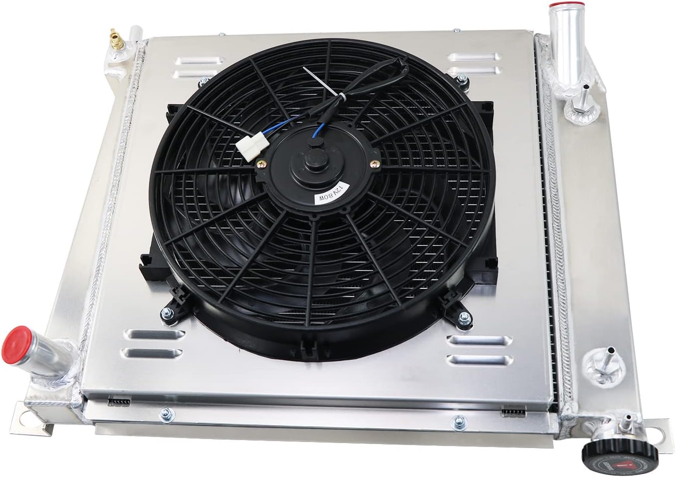Product Includes: 1 X 3-Row Aluminum Radiator (includes radiator cap) 1 X Aluminum Shroud 1 X 14inch Fans (Includes mounting kits) 1 X Thermostat Relay Kits Radiator Specs: Inlet Location Diameter: located on the Passenger side Outlet Location Diameter: located on the Driver side Core Material: Full Aluminum Tank Material: AA5052 Aircraft Grade Aluminum Petcock Drain: OEM style brass petcock drain Radiator Cap: CNC machined filler neck and cap Transmission Oil Cooler: Included Engine Oil Cooler: No Flow Type: Crossflow Delivery: Local Delivery 100% welded by TIG, no epoxy Fitment Type: Direct Replacement Fan Details: Maximum Fan CFM: 2200±200 FAN Diameter(inch): 14.05 X 14.05 X 2.5 Number of Blades: 8 blades (Plastic) Maximum Fan RPM/ Amp Draw :2,250 rpm / 12.70 amps Includes the Mounting Tabs for an Easy Zip Tie Installation Thermostat Kit: Universal fit for any automotive vehicle and electric fan Activates by grounding electric fans at preset temperature 180'F turn-on temperature, 165'F turn-off temperature 3/8" NPT thread-in brass probe w/ 1/2" NPT adapter included Probe typically threads into radiator, water outlet or manifold Thermostat Relay Kit Instructions: RED + connect directly to battery WHITE wire to ignition switch power source BLACK goes to thermos switch BLUE wire goes to the Fans This set up will run Fans & pull air in through radiator OEM/Substitute Numbers: 1164, CC1164, CU1164, DPI1164,MC1164,FO3010163,FOTZ8005EA This Radiator Compatible with: Replacement radiator for Ford Explorer 4.0L V6 1991-1994 Replacement radiator for Ford Ranger 2.8L 2.9L 3.0L 4.0L V6 1985-1994 Replacement radiator for 1991-1994 Ford Bronco II 2.8L 2.9L V6 radiator Replacement for B4000 4.0L V6 1994 radiator Replacement for Navajo 4.0L V6 1991-1994 PLS check core/overall/inlet/outlet SIZE carefully before you order