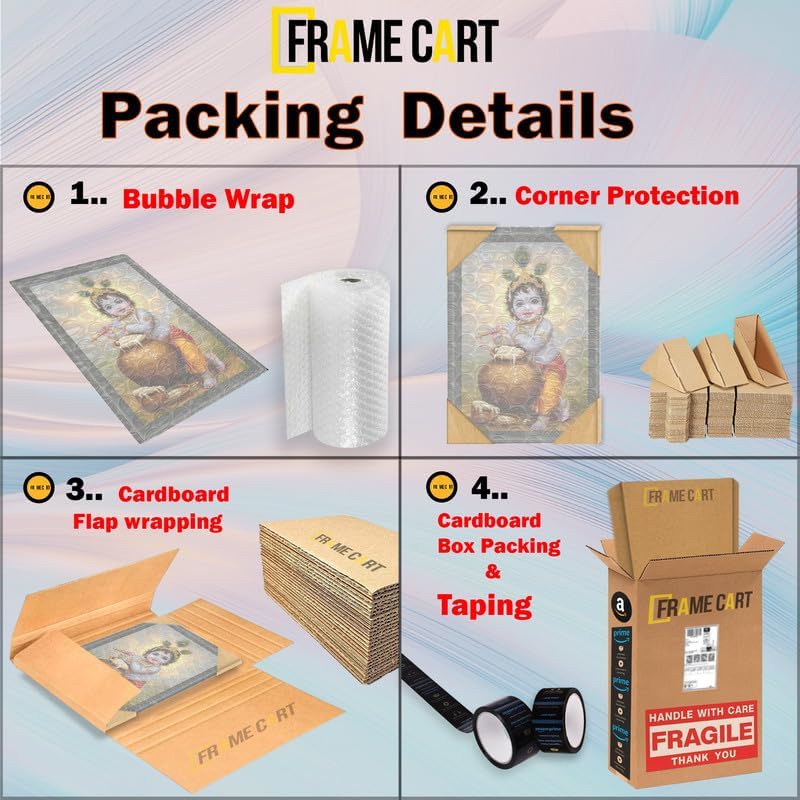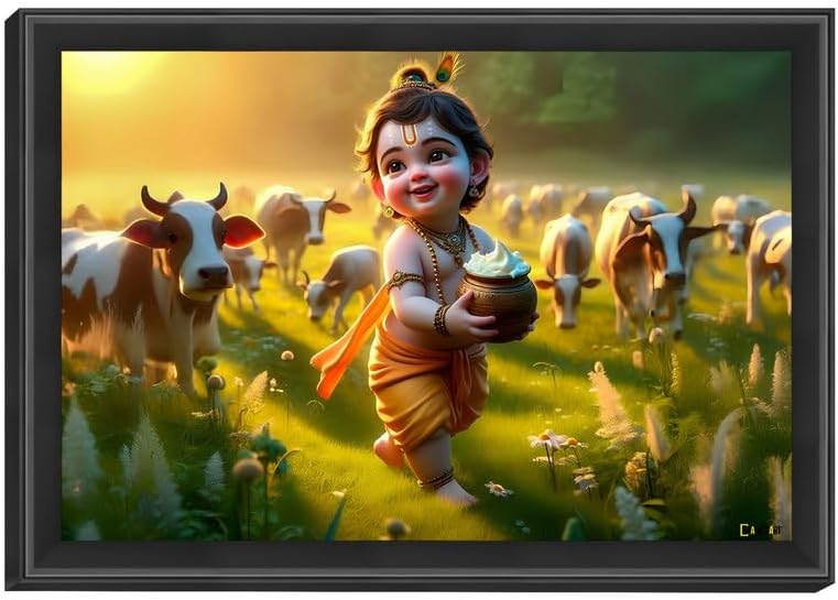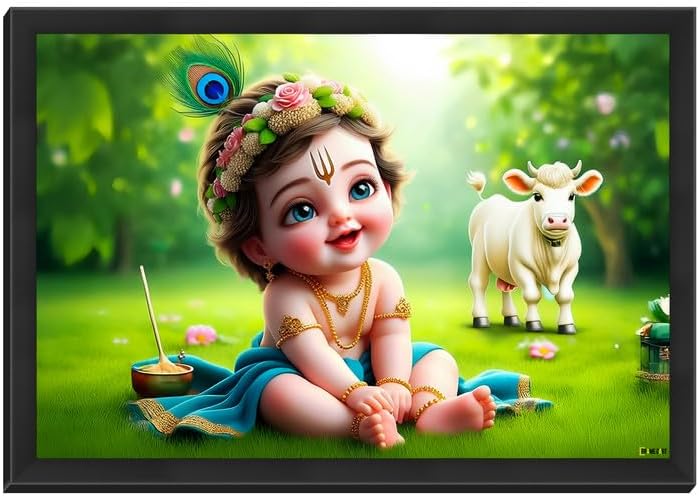 Product description Bring divine energy and innocence into your space with the Frame Cart Baby Krishna Photo Frame. This beautifully designed frame features Bal Gopal – the charming infant form of Lord Krishna, known for spreading positivity, purity, and blessings. Ideal for pregnant women seeking spiritual support, or anyone wanting to enhance the ambiance of their home, office, or living room with a touch of sacred art. Available in a range of sizes to fit your decorative needs, this frame makes for a meaningful gift and a soothing visual presence in any setting. Manufacturer Contact Information Frame Cart Collections