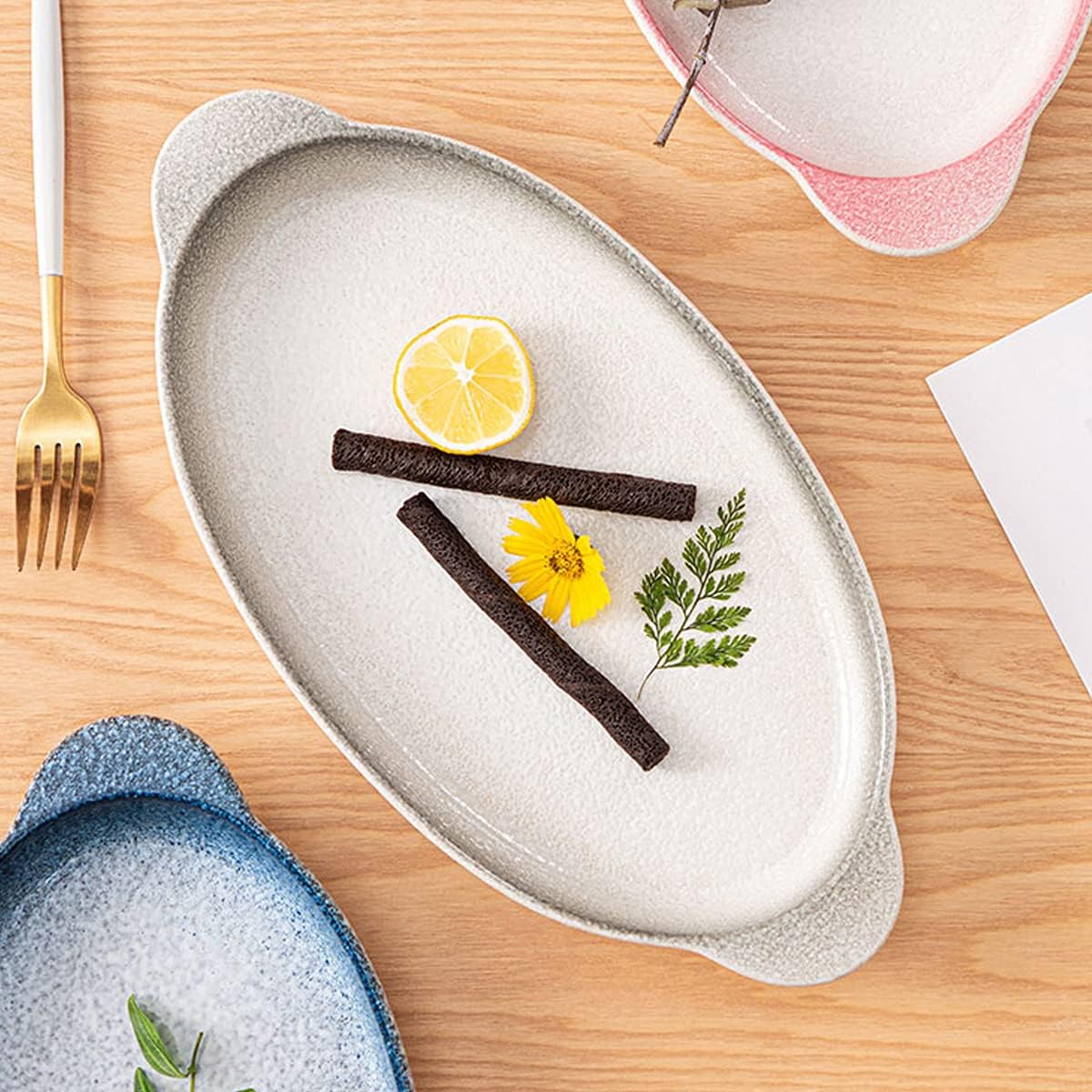 Product Discription: Name: Fish Plate Material: Ceramic Size: 12.4 X 6.5 X 1.4 in Package Quantity: 2 Piece Exquisite Design: Beautiful Designs and the Vibrant Colors Dinner / Lunch Plates Are Perfect for a Casual Family Get-Together, Party, Table Decoration. It is a Great Helper for Restaurants, Restaurants and Families. Ceramics: High-Temperature Firing, Environmentally Friendly, Can Be Used in Dishwashers, Microwave Ovens, Ovens and Freezers. Perfect Gift: It is a Convenient and Convenient Tableware for Contemporary Fashion, and Also Suitable for Festivals for Relatives, Friends and Family.