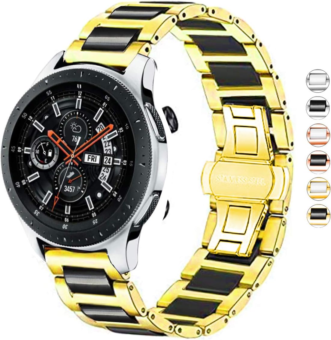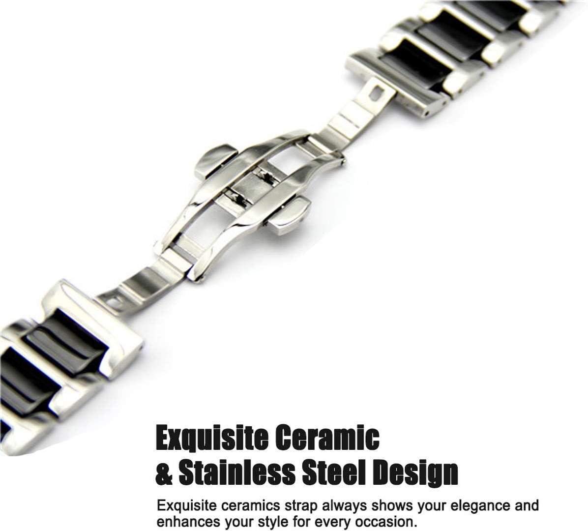 DEALELE Bands Compatible with Galaxy Watch 46mm, 22mm Solid Ceramic Stainless Steel Metal Strap Replacement for Samsung Gear S3 Frontier / Classic / Huawei Watch GT2 46mm Women Men Compatibility: for Samsung Galaxy Watch 46mm for Samsung Gear S3 Frontier / Gear S3 Classic for Huawei Watch GT2 46mm for Huawei Watch GT Active for Huawei Watch 2 Classic for Moto 360 2nd Gen 46mm for Asus Zenwatch 2 W1501Q 1.63 Inch / Zenwatch 1 W1500Q for Pebble Time / Pebble Time Steel / Pebble Time Classic for LG G Watch Urbane W150 / LG G Watch W100 W110 for Vector Watch Luna Smartwatch for Ticwatch 1nd for Fossil Q Founder / Marshal / Wander / Crewmaster / Grant Packing including: 1 x Watch Band 2 x Qucik release pins 1 x Link remover 1 x Gift box packing Our Service: 100% Satisfaction Service - 24 hours online quick-replies if you have any questions. We strive to provide our customers with high quality products. Please pay close attention to "DEALELE WATCH BAND" for more new style straps.