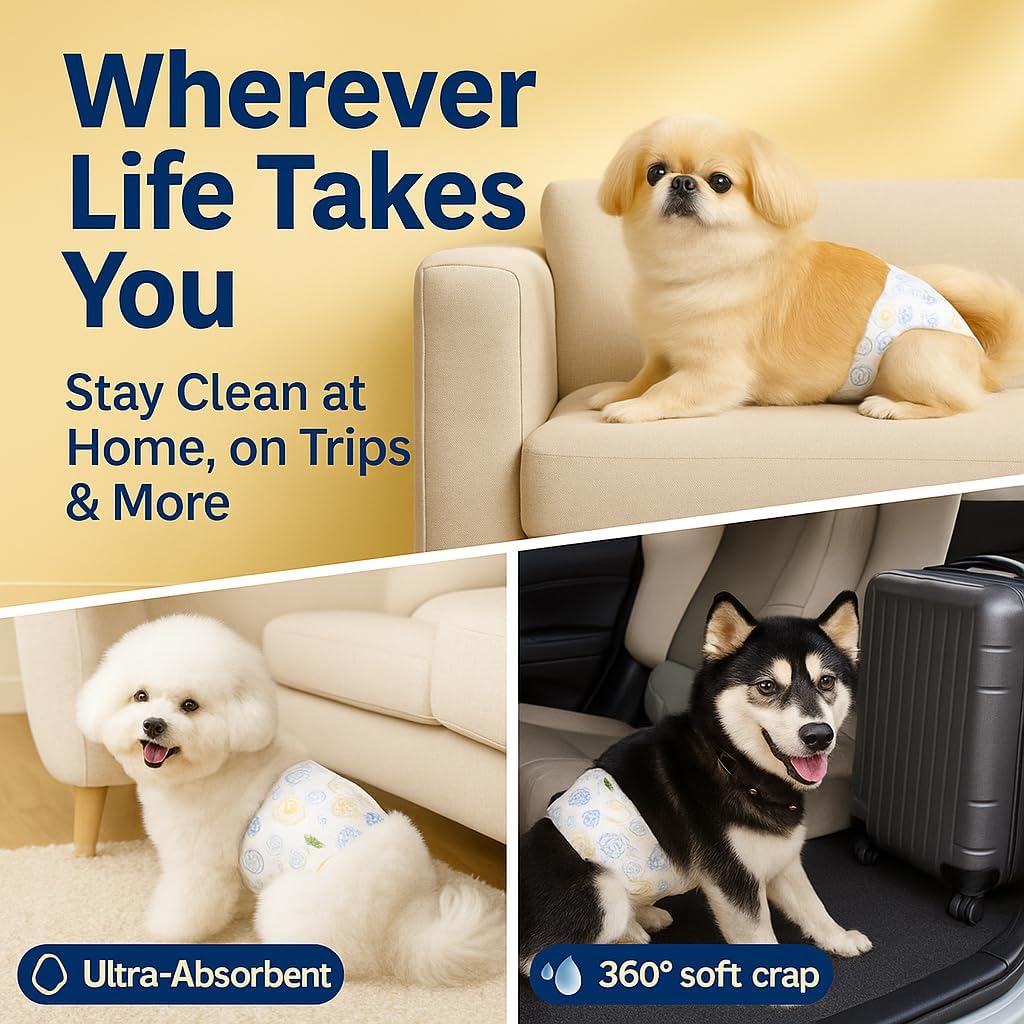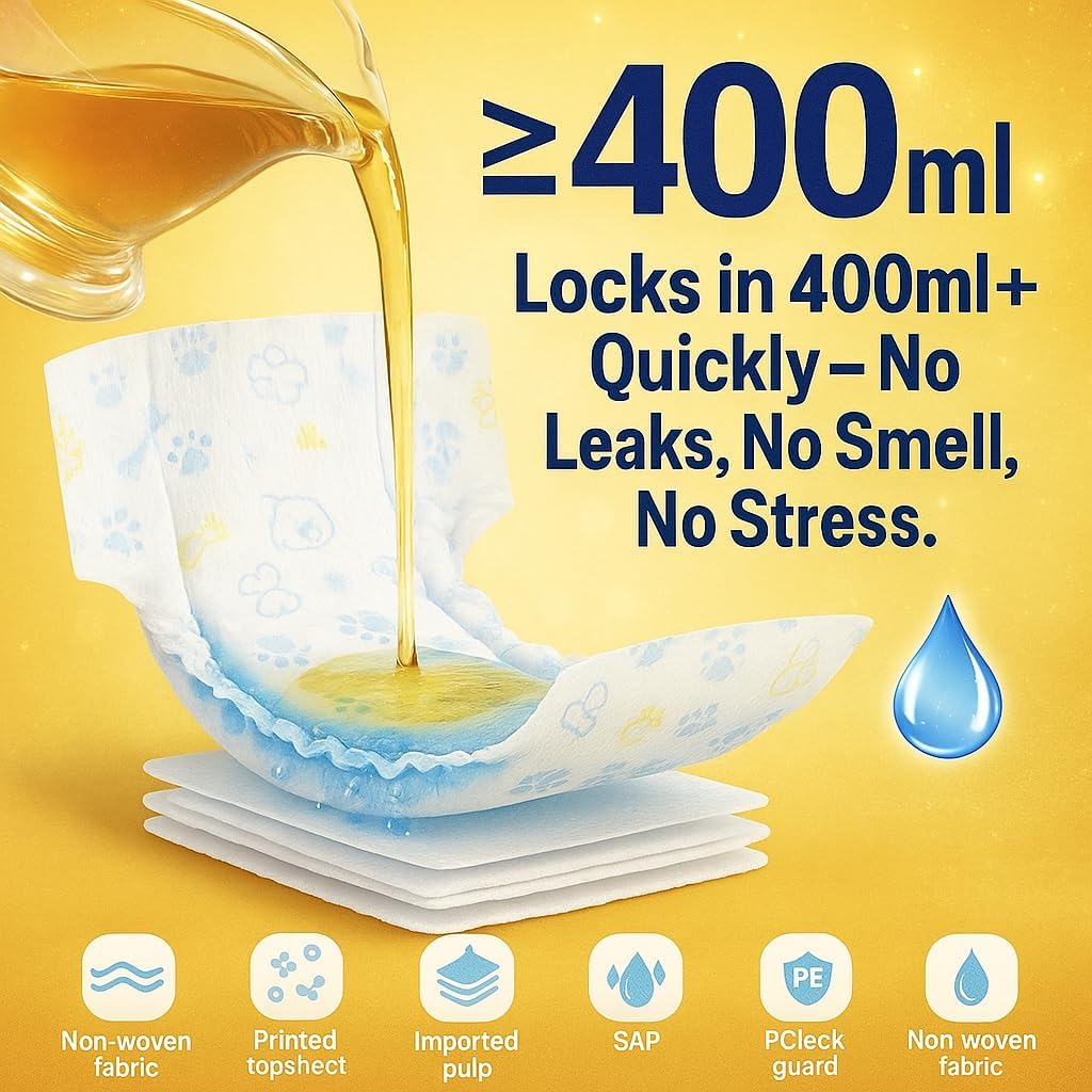 Why settle for less when your dog deserves the best? Male Dog Diapers aren’t just diapers—they’re your pup’s all-day comfort, your home’s cleanliness, and your peace of mind, all rolled into one. Unlike flimsy or plastic-feeling wraps, our diapers are crafted with premium pet-safe materials that feel like a soft touch on your dog’s belly. Thanks to high-end imported fluff pulp and Japanese SAP polymers, they absorb over 400ml of liquid in seconds—no leaks, no stink, and no dampness. Worried about breathability? We've got that covered—literally. Our 3D vented backsheet design allows for heat and moisture to escape, keeping your pup dry and irritation-free, even after hours of wear. Plus, the 360° stretchy waistband ensures a snug, stay-put fit for all shapes and sizes. These belly bands aren’t just useful—they’re a game-changer for: Puppies in potty trainingMale dogs with incontinenceSenior dogs with reduced bladder controlMarking issues indoorsLong travels and overnight stays Your pup can play, nap, and cuddle all day—with zero fuss and zero cleanup for you. Choose us. Choose comfort that protects.