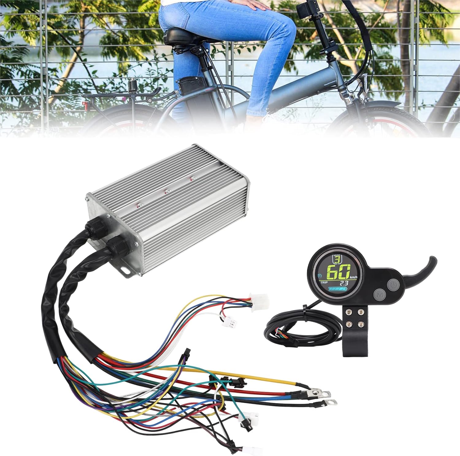 [COMPREHENSIVE DISPLAY PANEL] The Electric Bike Controller and Display Panel features a detailed display showing single running mileage, running time, real-time vehicle speed, battery power, voltage, gear indicator, total mileage, cruise indicator, and fault icon code. This comprehensive display ensures you have all the necessary information at your fingertips for a smooth and informed ride.[EASY INSTALLATION] Designed for convenience, this electric bike controller and display panel is easy to install and compatible with electric bicycles, scooters, and handlebars with a diameter of 22.5mm. Its user-friendly design ensures a hassle- setup, making it for both beginners and experienced users.[DURABLE GROOVED SHELL] The controller shell is crafted from premium metal with a grooved design, offering excellent heat dissipation to protect the internal circuit from thermal overload. This robust construction ensures long-lasting durability and reliable performance even under demanding conditions.[VERSATILE CONTROLLER FUNCTIONS] The controller harness includes power supply positive and negative poles, motor three-phase line, light horn power supply, power assist sensor, speed regulating handle, reverse function, intelligent learning, low brake power failure, motor hall line, and main switch. This versatility makes it a comprehensive solution for various electric bike and scooter needs.[LIGHTWEIGHT ABS DISPLAY PANEL] The L081 display panel is made from premium ABS material, known for its lightweight and durable properties. This ensures the display panel is both easy to handle and to wear and tear, providing a reliable and long-lasting addition to your electric scooter or bike.Spec:Item Type: Electric Bike Controller and Display PanelMaterial: ABS, aluminium alloyGross Weight: 1374g/48.5ozVoltage: 48V 60VPower: 1500WCurrent Limiting: 50ALow Voltage: 42V 53VPackage List:1 x Display Panel1 x