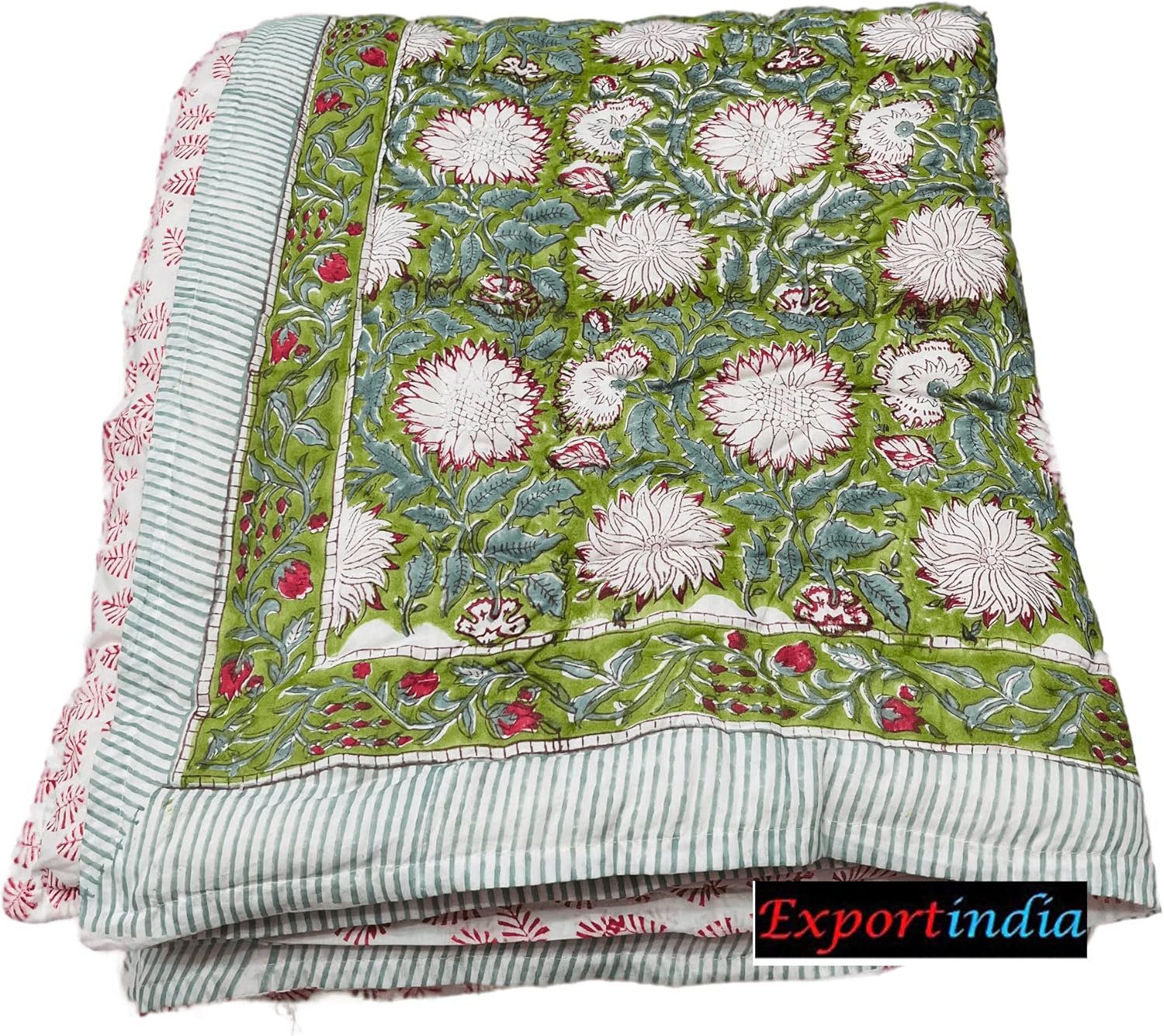 ★DESCRIPTION:- This is Special Unique Hand Block Printed Quilt, Jaipuri Rajai.My units member made this special quilt.The entire quilt is made inside i used 100% pure natural cotton filling.This is hand block print is famous of Jaipur rajasthan. cotton quality is cotton voil.Quilt is very soft and warm.These cotton light weight quilt with a beautiful color and design can be used.Used both sides (Reversible).★PURE COTTON JAIPURI RAZAI QUILT:- Hand Printed with the age old slow process of carved wood block printing, our Jaipuri Razai is stuffed with export quality cotton. The outer layer fabric is pure cotton voile, which is breathable, soft, and snugly. Once you get in, it will be really difficult for you to come out of it. ★HAND BLOCK PRINTED RAZAI:- Hand blocking is one of the specialties of Jaipuri Razai. Hand blocking is a centuries-old technique used in Rajasthan. Wooden blocks are cut out in multiple shapes and unique designs are carved onto them. Then these blocks are dipped in color and pressed onto the cloth repeatedly. ★DYNAMIC TRADITIONAL MOTIFS:- The designs and embroidery you find on these quilts are also unique. There are various kinds of prints that Rae famous and sought after when it comes to Jaipuri Razai, includes, Jaipuri print, Hand-Block Print, Gold Print, and Hand Stitched and Quilted. ★PRODUCT FEATURES:- Hand-Stitching by the Local Artisans.Cotton Voile Spreading.Hand Printing and Block printing.Jaipuri Quilts are made from 100% cotton.Super soft and cozy. ★WASHING INSTRUCTION (WASHALE):- dry-clean. ★Package Content:- 1* 100%Pure Cotton Traditional Jaipuri Razai Quilt