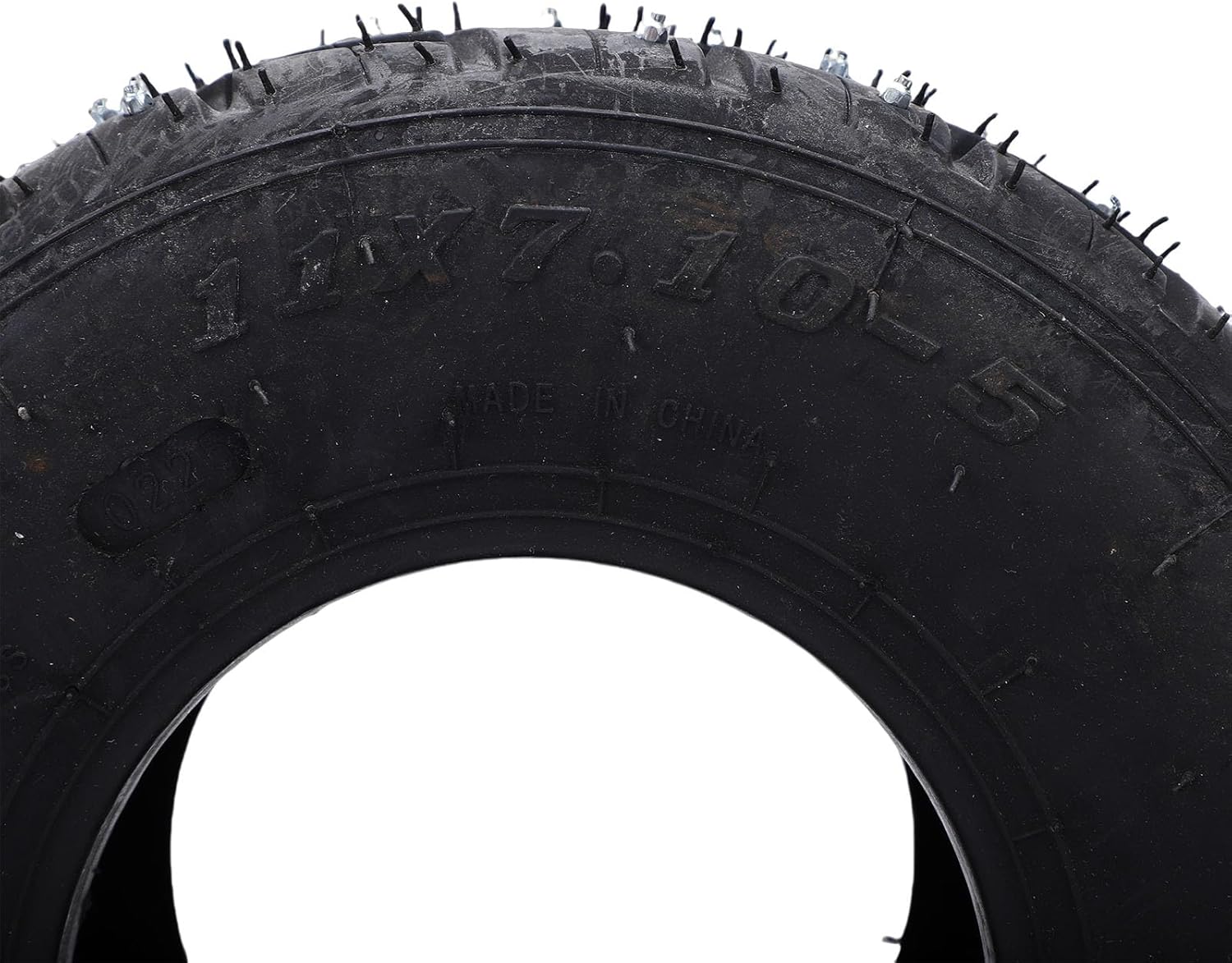 [Perfect Fit for 5 Inch Rims and Versatile Use] Designed specifically for 5 inch rims this vacuum tire is compatible with drift trikes go karts atvs and utvs. whether you're racing or exploring its reliable performance and universal fit make it an ideal choice for enthusiasts seeking both compatibility and top tier performance. [Durable Rubber Construction for Long Lasting Performance] Crafted from enduring rubber this tire is built to withstand harsh conditions while maintaining optimal performance over time. the robust material resists wear and tear ensuring extended tire life and reliable traction whether you're on snow mud or paths. [Tubeless Design for Easy Handling and Confidence] Experience effortless cornering and superior grip with this tubeless tire engineered to tackle diverse terrains with ease. the airtight seal minimizes the risk of sudden deflation while the lightweight design enhances maneuverability giving you the confidence to push limits. [Superior Traction on Snow and off Road] This 11x7.10 5 go kart vacuum tire features anti skid studs and a four layer rubber structure designed to provide unparalleled grip and control in snowy or rough terrains. the aggressive tread pattern ensures stable driving even in the most challenging conditions making it perfect for winter adventures or off road racing. [Puncture Proof and Quick Replacement] Say goodbye to frequent tire changes with this puncture proof design that resists damage from objects. its user friendly structure allows for swift replacement saving you time and effort when dealing with worn out or cracked tires so you can get back to your ride faster. Spec: Item Type: Kart Vacuum Tire Size: Approx. 11x7.10-5 Wheel Rim Diameter: Approx. 12.7cm / 5in Features: Ideal for snow off road driving, with anti skid studs for strong grip and excellent anti slip performance. Fitment: for Drift Trikes and Go Karts equipped with 5 inch tire