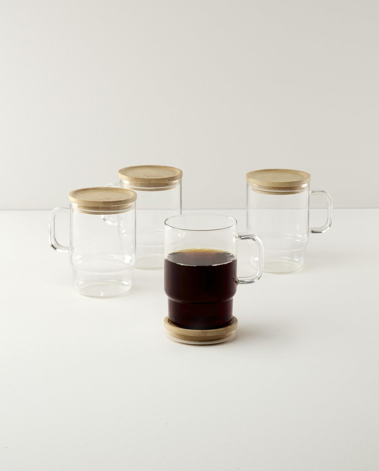 | Included Components | (4) Glasses with bamboo lids that can be used as coasters, Each glass Measures 4.75" x 3.25" diameter with 17.5-oz capacity |