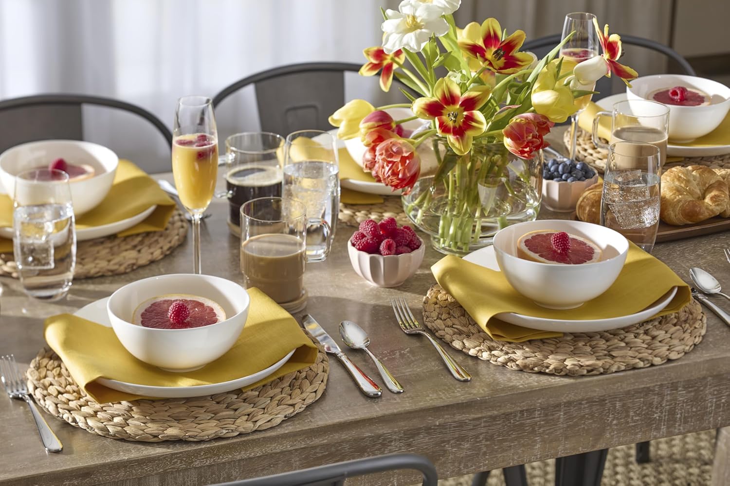 Made of borosilicate, a type of glass used by laboratories for its thermal shock resistance, these hot beverage mugs can handle the heat of steeping tea, no problem. Clearly...they get points for style too. Set of 4 with bamboo lids that can be used as coasters. Measures 4.75" x 3.25" diameter with a 17.5-oz capacity each. Mugs are dishwasher safe; lids are hand washable only. From the Tuscany Classics Collection.