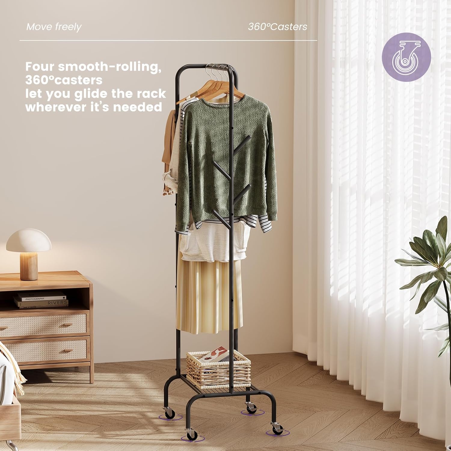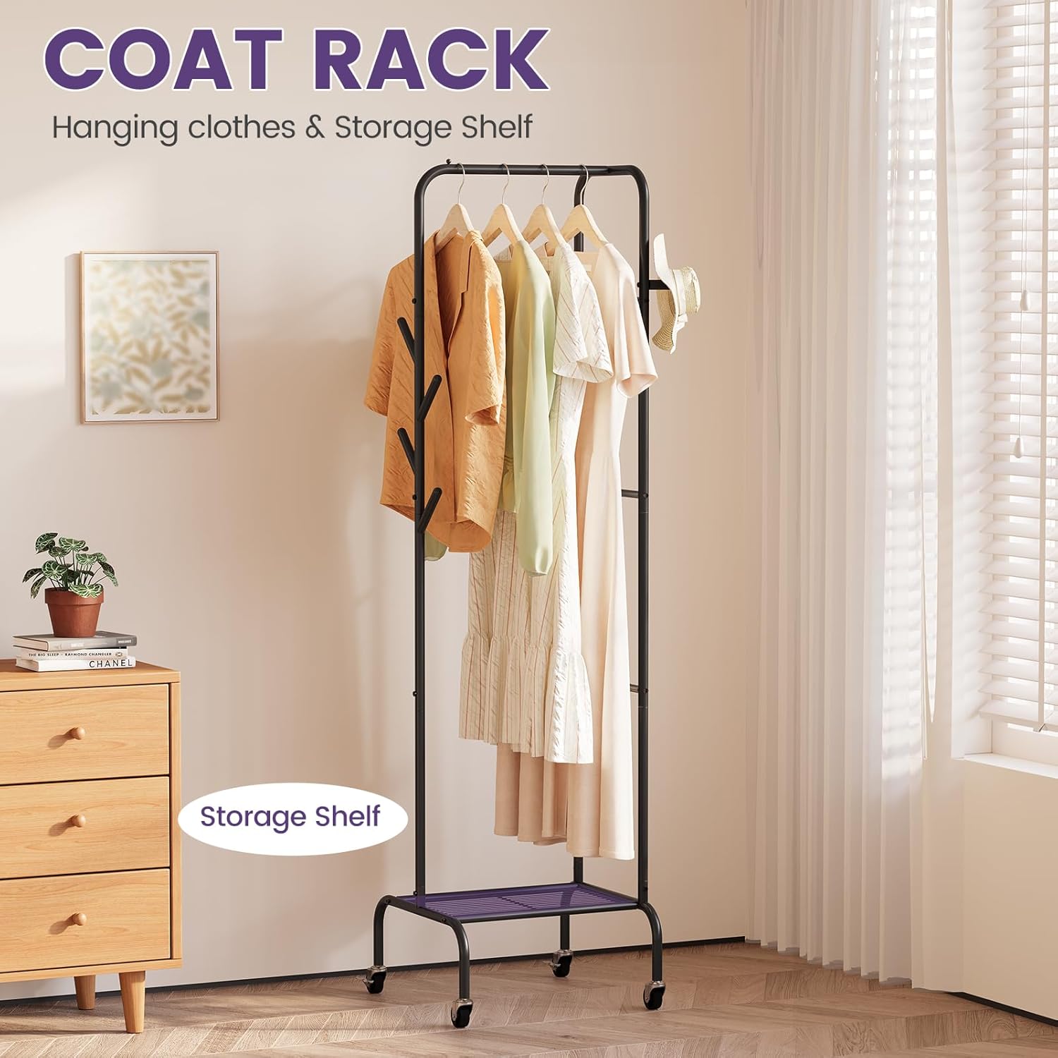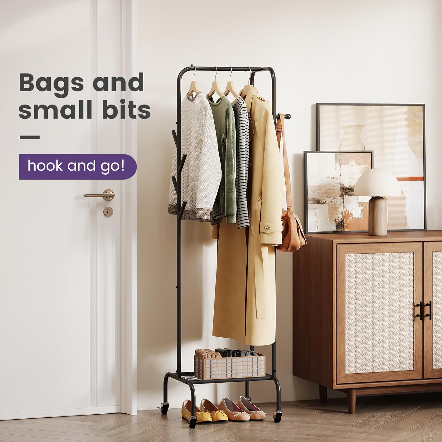 Transform your entryway with this modern freestanding coat rack that combines style and functionality. Standing 72 inches tall with a 24-inch width and depth, this versatile storage solution features 5 hooks and 2 convenient shelves perfect for organizing your outerwear and accessories. The rotating design allows easy access to all items, while the sturdy construction supports up to 30 pounds of load capacity. The sleek, contemporary style complements any living space, and the free-standing installation requires no wall mounting. Assembly is required, but the included base makes setup straightforward. This practical coat tree is ideal for keeping your coats, hats, and bags organized and readily accessible in your entryway or living room.