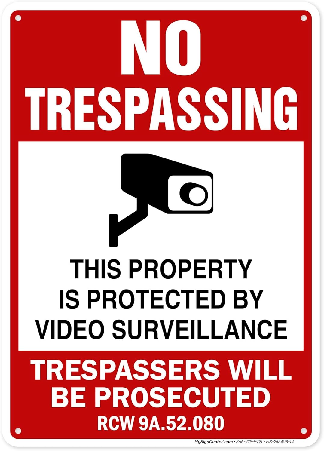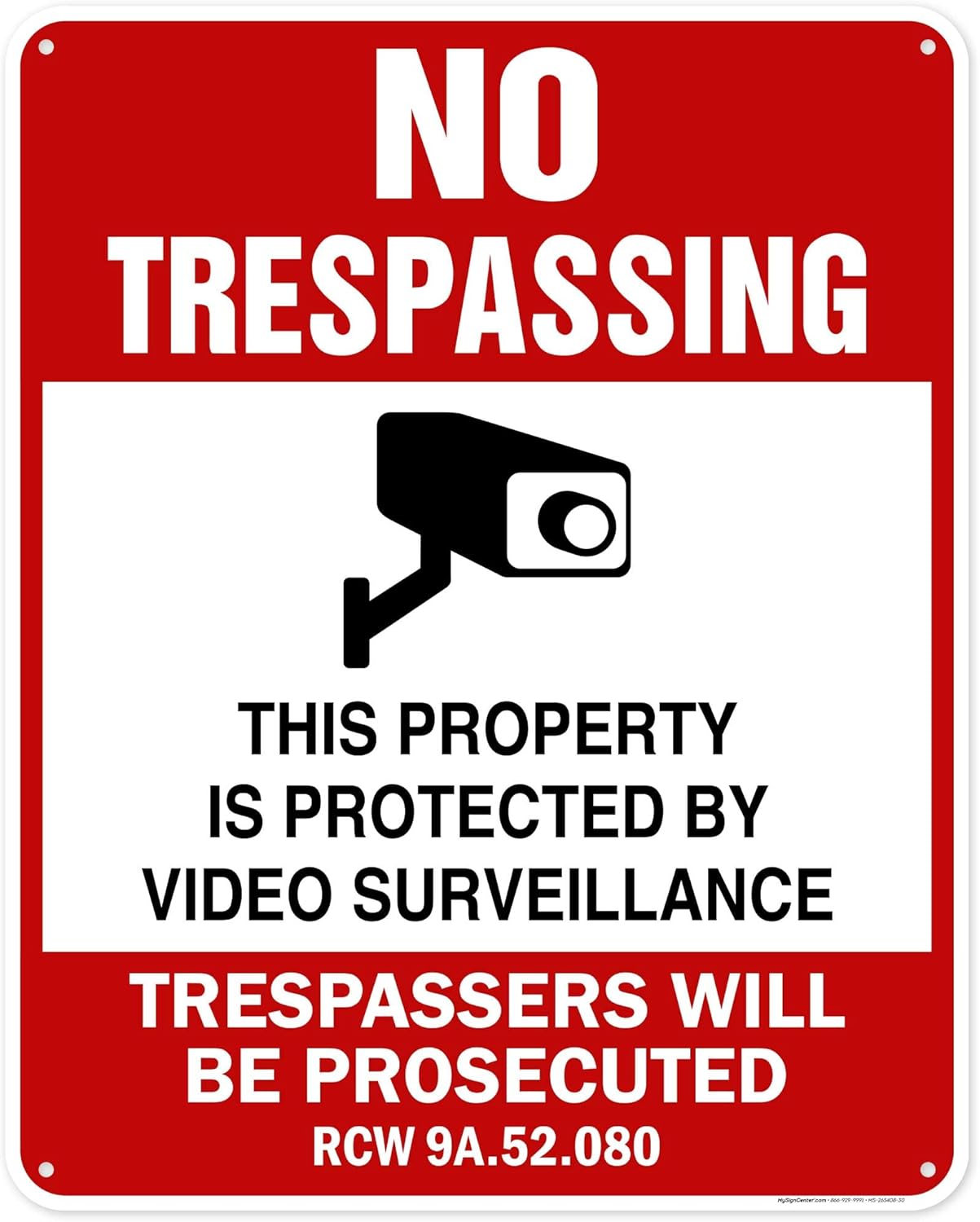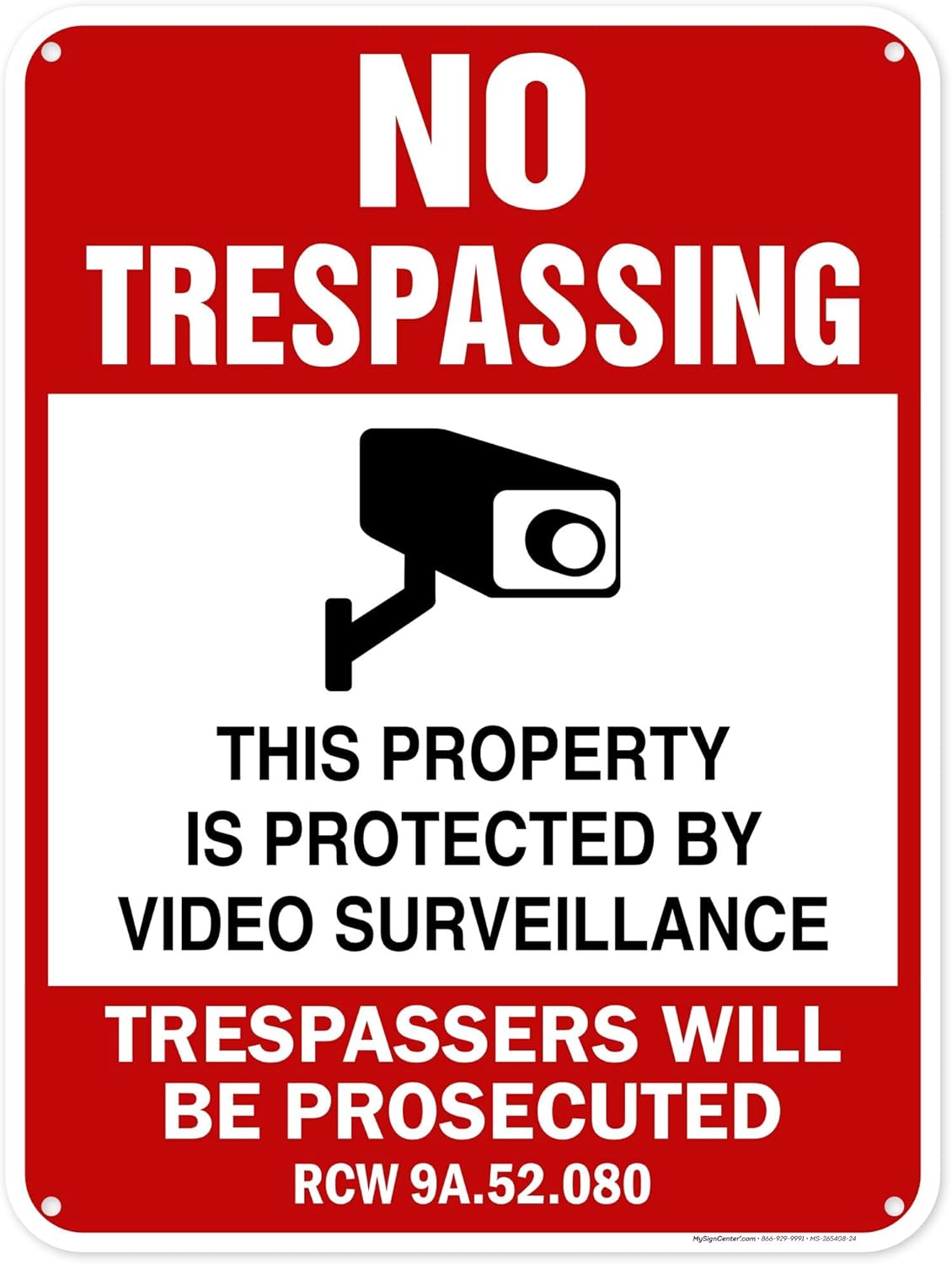 No Trespassing Washington This Property Is Protected By Video Surveillance Sign, 18x24 Inches, 55 mil thick HDPS (high density polystyrene), Made in USA by My Sign Center
