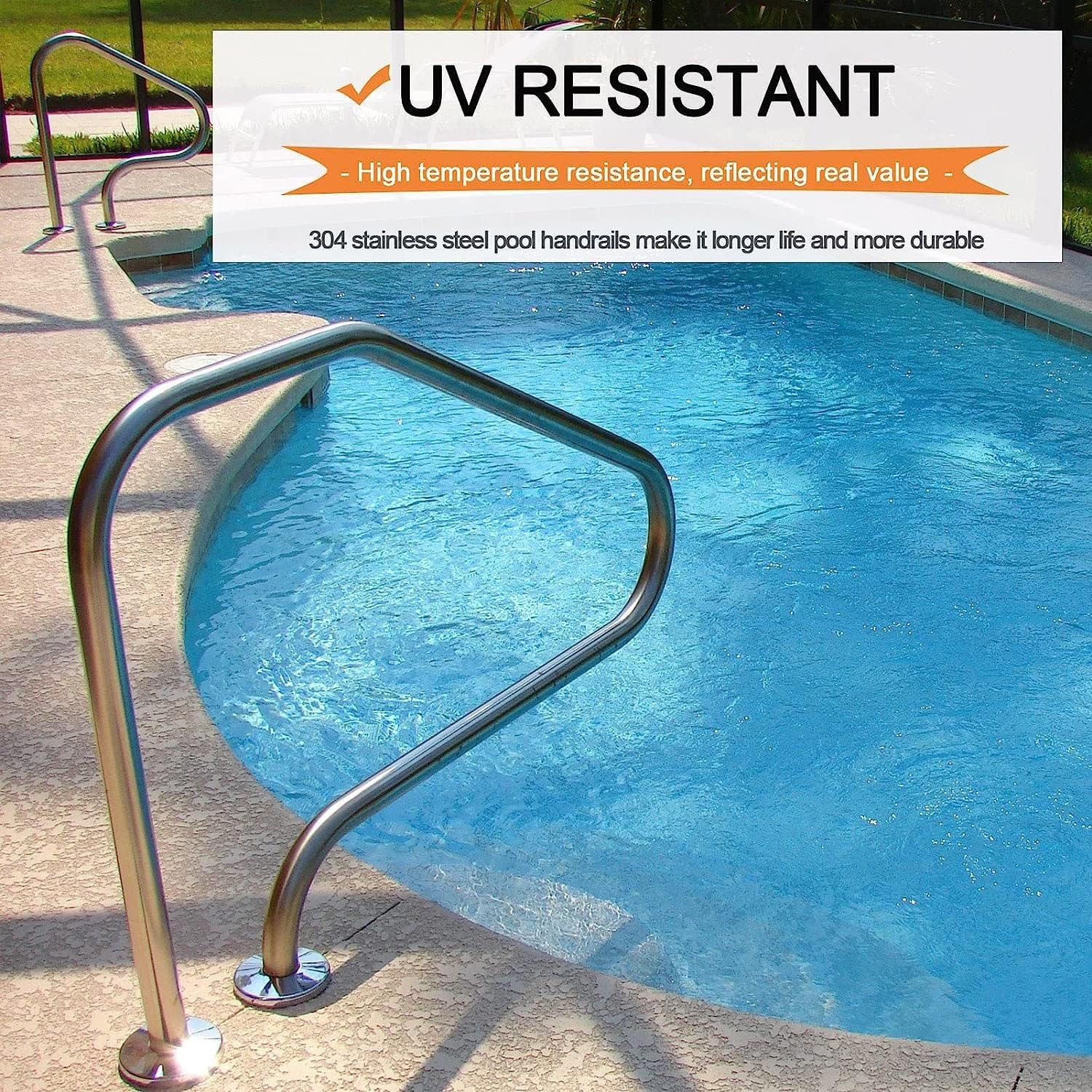 The 304 stainless steel design ensures that your Swimming Pool Stair Rail will not rust and stain for years to come. Perfect for any size pool, the rails have a small footprint, high load capacity, excellent grip, and can help your family or friends get in and out of the pool easily, with stability ensuring safe and solid support for incoming and outgoing water. --Product name: stairs/pool railing. 1.Specifications: 1-pcs 3.Material: 304 stainless steel 4.Size: 80 x 27 x 80 cm (31.5" x 10.6" x 31.5") --List of products in ”1-pcs“. 1 x Swimming Pool Hand Rail 6 x Concrete Anchor Bolts Screws 2 x Escutcheon plates --Product Maintenance: --If the stainless steel handrail is dirty with dust, wipe it directly with a dry cloth. We offer first-class quality and best service. If you are not satisfied after receiving the package, we offer you a satisfactory solution! If you have any questions, please feel free to contact us!