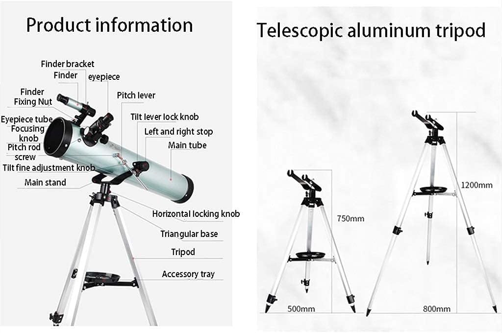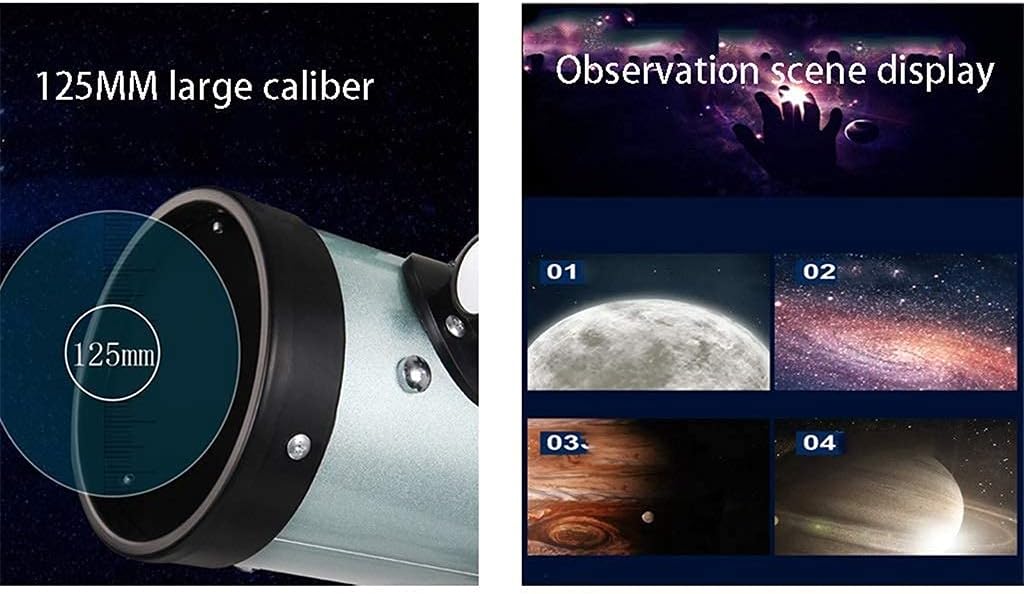 Start your journey of discovery! Here's a versatile telescope designed to pack up and go anywhere. It's excellent for daytime birding nature study and scenic viewing and will take you beyond the Earth's horizon for nighttime stargazing and Moon-watching.The Christmas and holiday gifts for children! ■ Product specifications Optical system: reflective Caliber: 125mm Focal length: 700mm Length of primary mirror: 680mm 1 telescope only ■ Tip: We only sell telescope not including other decorations. Due to problems with light display etc. the color difference of the product is normal. If you have any questions about the product please leave us a message and we will get back to you within 24 hours. Note: This product is an amateur beginners telescope. If you need a special telescope for professional work please purchase it carefully. We will not accept any return problems arising from this