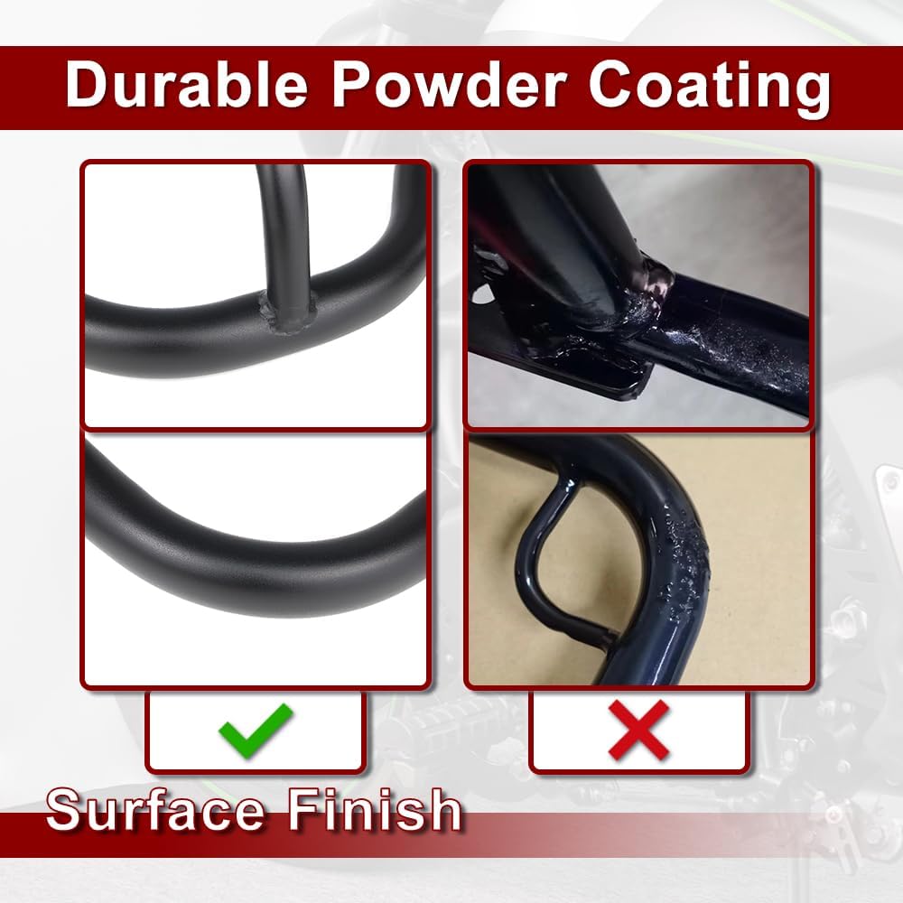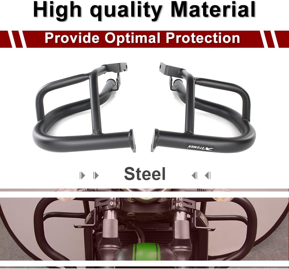 Xitomer crash bars engine guards is made with extremely stable tube-in-tube construction and follow the lines of the bike perfectly, giving it a customized appearance Fitment: Compatible with Vulcan S 650 VN650 2015-2024 (Aftermarket product, not OEM one) Feature:Satin black powder coated steel for enhanced durability and corrosion resistance, sturdy and durable, will not deform after long time use, it is hard texture, good protection for the engine, the body will not be broken when tipped over.Crash bar engine guards reduce the risk of rider injury in the event of collapse or destabilisation in an accident.These Crash bars will protect your motorcycle body frame and engine, minimizing the damage to your motorcycle when it falls on the side, save the maintenance fee.We have designed the shape to provide more comfort for short or long trips Easy to install: Bolts directly to the motorcycle frame after assembly, no drilling, cutting, welding or other modifications required, includes all mounting hardware. Without installation instruction